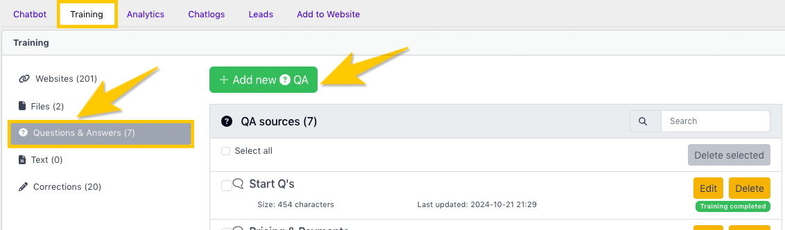 Adding new question-and-answer sources allows your Cleva.Bot™ to access a broader range of information. This ensures that Cleva.Bot™ can provide accurate, up-to-date, and contextually relevant answers to user queries. By incorporating various sources, you can enhance Cleva.Bot's ability to understand and respond to a wide array of questions, improving user satisfaction and engagement.