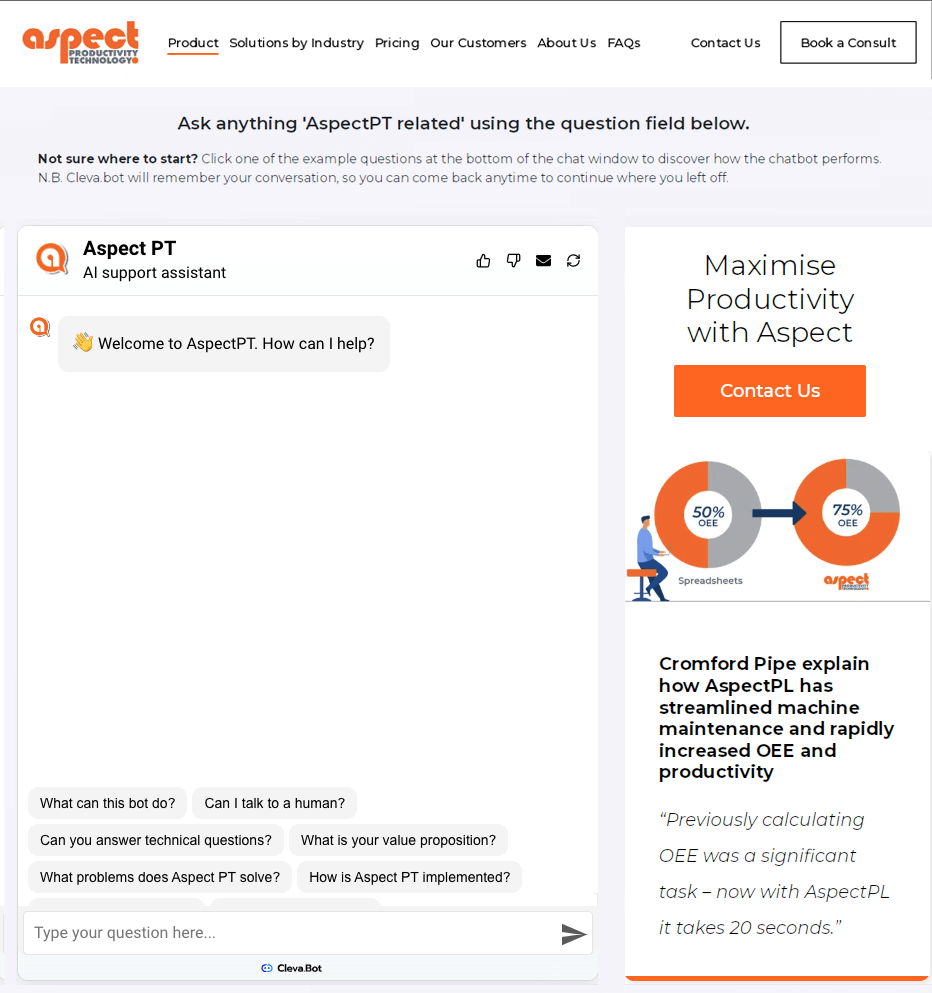 Your Cleva.Bot™ has been created to be consistent with your brand and website colours/style. These presets can be modified on request by contacting support@cleva.bot
