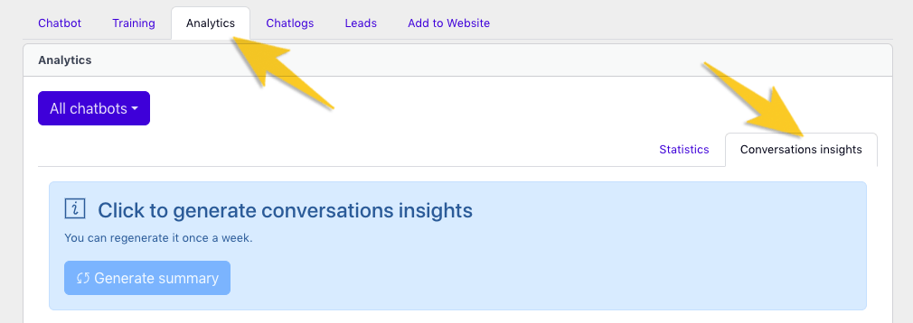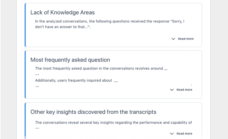The "Conversation insights" report can be generated weekly to provide deep analysis of user activity. This is AI generated by analysing the conversation history.