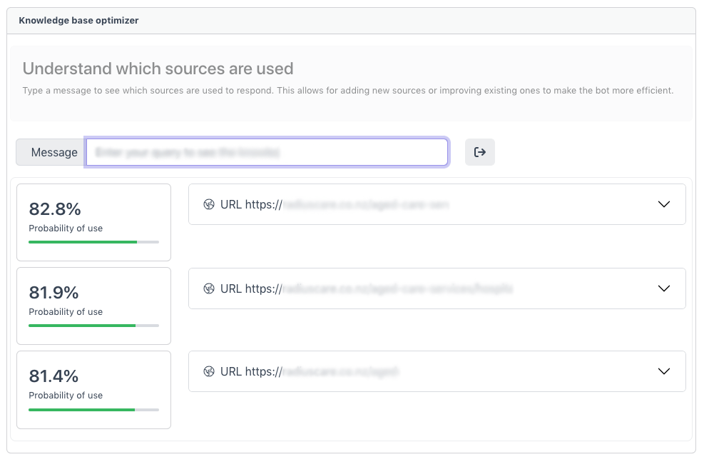 'Knowledge Base Optimizer' is a powerful tool that allows you to see the relevant sources, weighted by probablility, that are contributing to the particular response or topic.