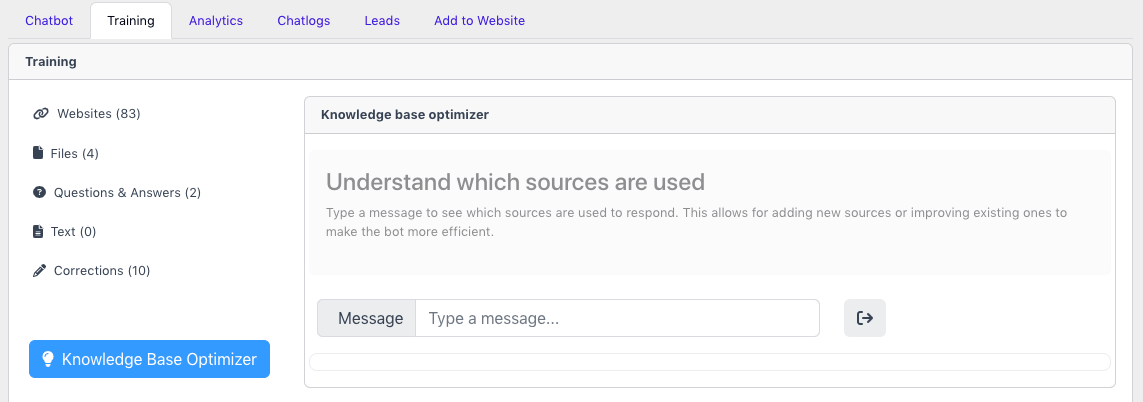 'Knowledge Base Optimizer' is a powerful tool that allows you to see the relevant sources, weighted by probablility, that are contributing to the particular response or topic.